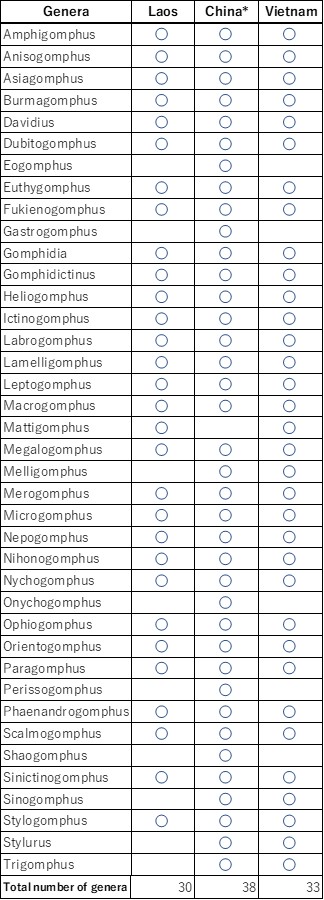 ラオス、ベトナムおよび中国のサナエトンボのリスト一覧